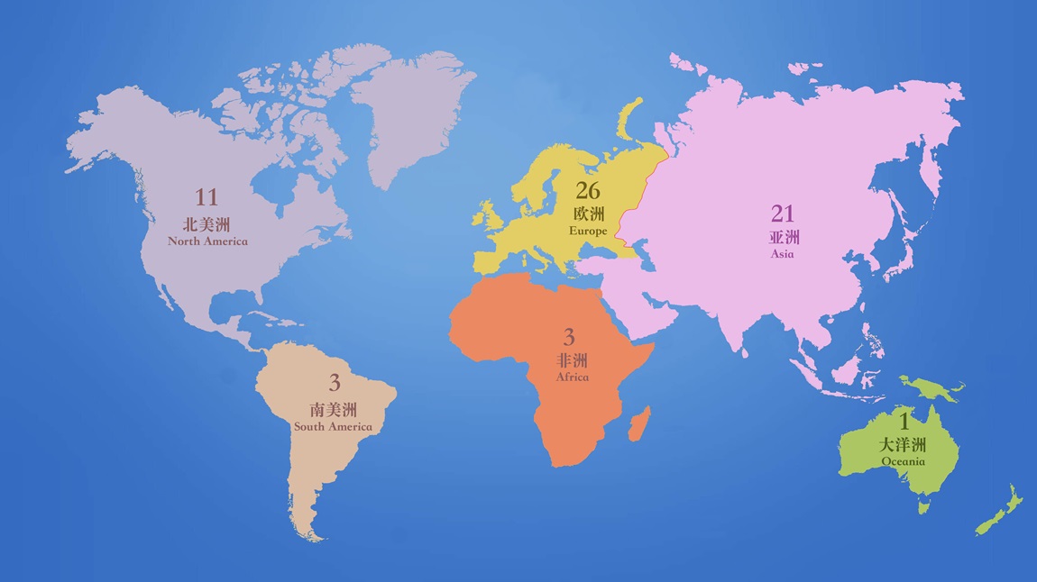 截止目前,我校已经与28个国家和地区的65所高校建立合作伙伴关系。