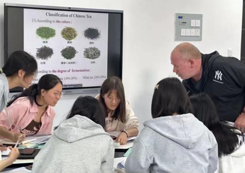 外籍教师Evans Lionel Alfred(右一)为学生答疑解惑