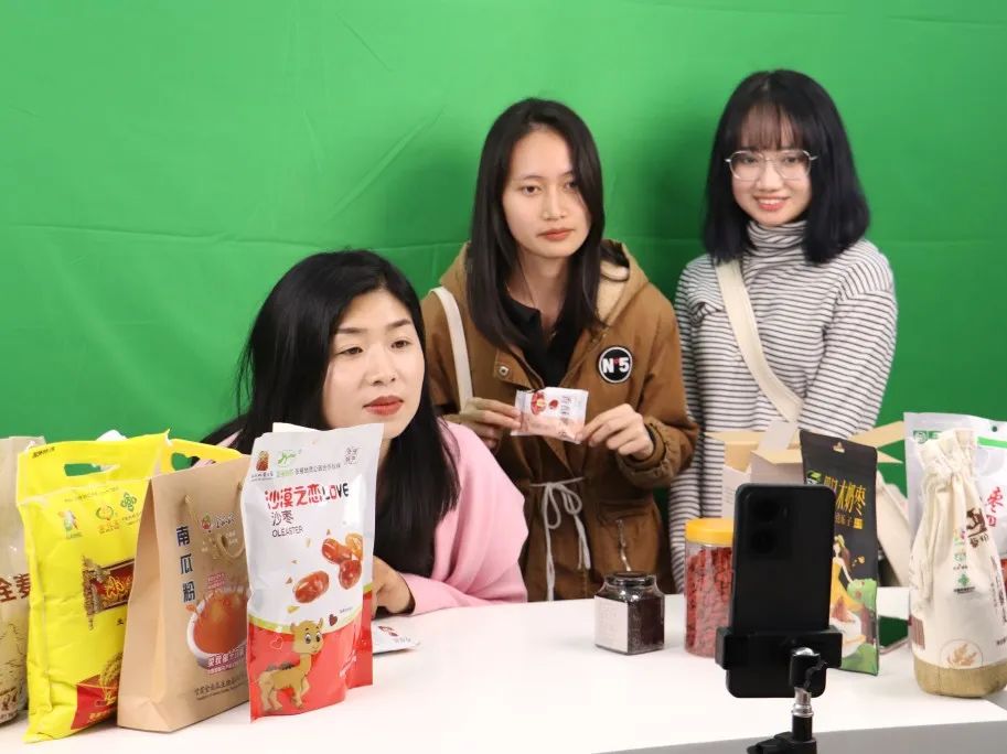 “Hello!我是来自土库曼斯坦的马睿,欢迎大家来到直播间。这是本地的脆红枣,又香又甜,而且很脆,大家都可以买点尝尝!”在青创空间的农特产品直播间,留学生们纷纷为本地农特产品带货。首次化身带货主播,留学生们毫不露怯、格外卖力,积极与网友互动。“Wonderful!喜欢吃红枣的话就进来看看吧,我们在这里等你哦!”“留学生主播”向屏幕前的观众详细介绍产品口味,大力推介甘州本地农特产品。中英文互动翻译、地方特色文化交流、大型试吃现场、观众提问与答疑……各个环节不断把直播间的氛围推向高潮。