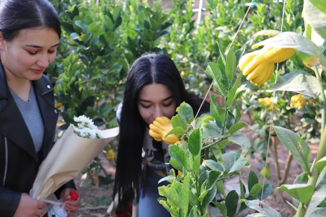 高标准智能温室大棚里,鲜红的火龙果长势喜人,无花果、佛手、柠檬等水果挂满了枝头。在这里,青年留学生在体验中近距离感知中国乡村发展,尝试探寻中国乡村振兴的密码。“此次研学给我留下深刻的印象,不仅让我更深入地了解中国文化,更让我感受到了这里朴实的风土人情”,留学生达尼亚尔说,“这次活动来到速展村,让我亲身感受到中国的快速发展,刚才品尝了大棚里生产的农产品,非常美味。”