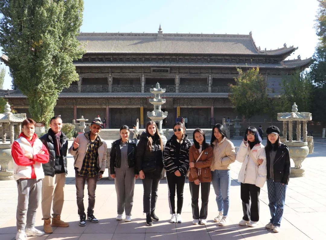 在甘州区博物馆和张掖大佛寺,研学团青年留学生们在讲解员的耐心讲解下,感受了华夏文明传承区丝路文化的发展历程及古丝绸之路重镇的历史变迁,聆听了甘州古城的悠悠历史,近距离观看了张掖大佛寺保存完好的建筑、雕塑、壁画、佛经等各类经书古籍和文物遗迹,了解了大佛寺在丝绸之路上的重要地位和深远影响,真切体会到了甘州的美丽和深厚的历史底蕴。
