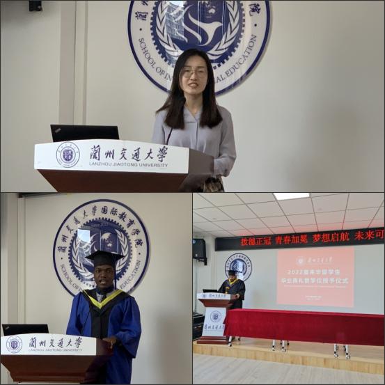 2022年6月17日下午,我院2022届留学毕业典礼暨学位授予仪式在笃行楼1105会议室举行。兰州交通大学副校长陈兴冲、国际教育学院全体教师出席了本次典礼,毕业典礼由国际教育学院院长张国锦主持。