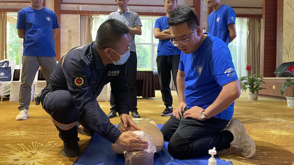 随后,我校邀请甘肃省方舟救援队的专业救援教官向所有参会老师们讲解了海姆利立克急救法、心肺复苏技能、伤口包扎术、密集人群防踩踏方法和应急逃生基本常识,老师们积极现场实践演练各种实操技巧。此次培训旨在提高老师们的安全意识和应急自救逃生能力,掌握应急安全常识,为防范学生安全事故夯实基础。