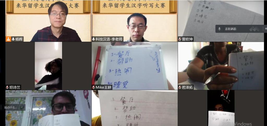 受疫情影响,本次汉字听写大赛全部在线上进行,我校境内外的100多名留学生参加了本次比赛。选手分成初级组、中级组和高级组三个组别分别进行比赛。比赛参照“中国汉字听写大会”的模式:留学生在听到汉字的发音及解释后,在规定时间内写下汉字,由评委评定。