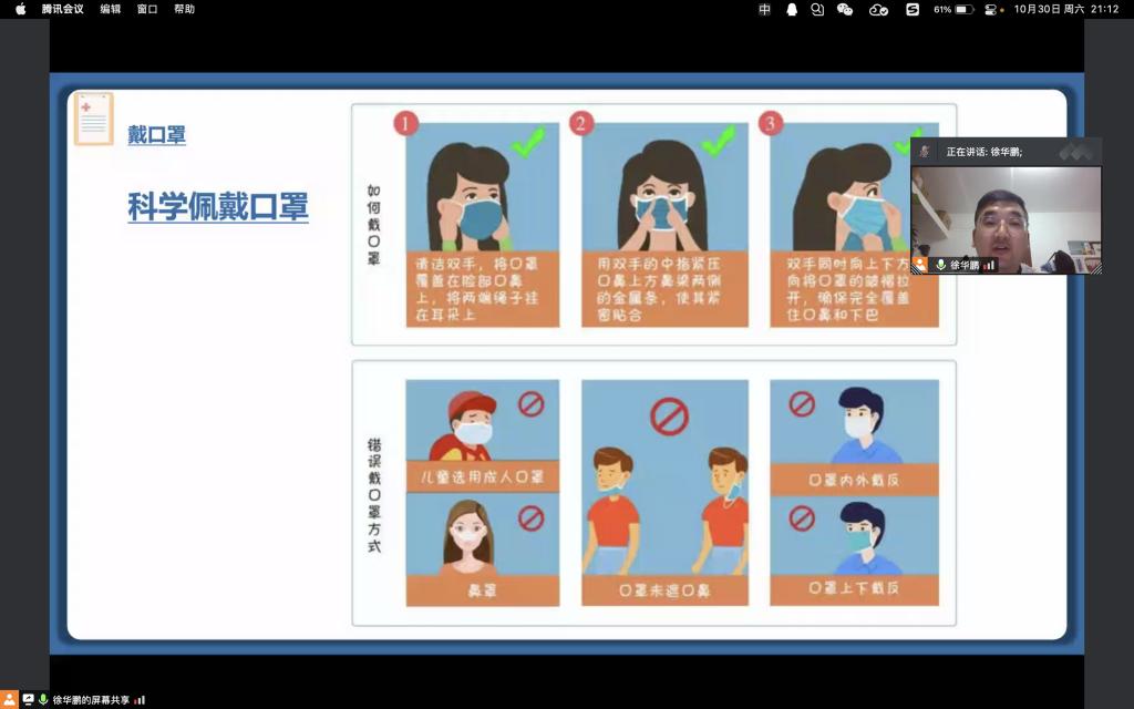 线上科普,温暖守护。为了预防留学生因不理解防疫措施而产生不良心理变化,学院组织召开留学生线上班会,解读当前疫情形势及学校防控举措,为留学生答疑解惑,缓解留学生紧张情绪。面向留学生讲解防疫规范,指导留学生掌握自我防范方法。