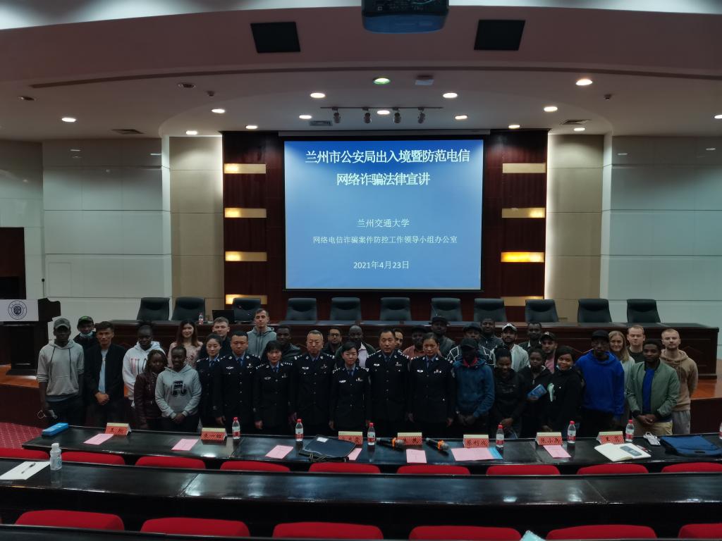 4月23日下午,为提升来华留学生防范电信网络诈骗的能力,帮助留学生更好地了解中国涉外法律法规,自觉遵纪守法,国际教育学院组织留学生参加 “兰州市公安局出入境暨防范电信网络诈骗法律宣讲”
