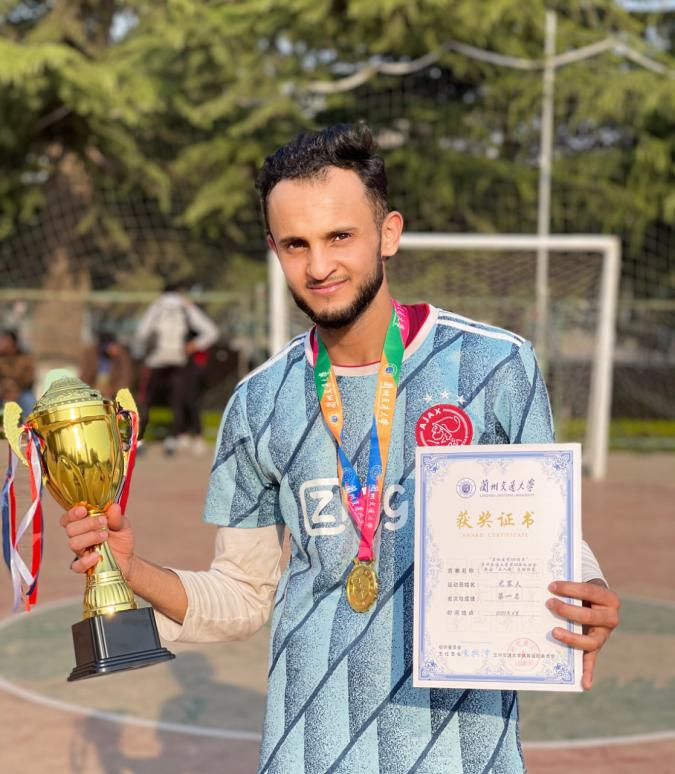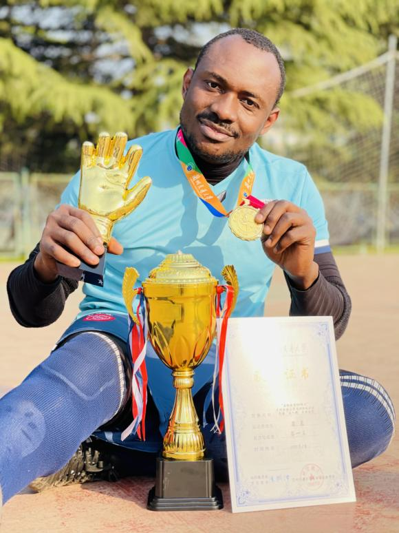 在颁奖仪式上,留学生们和中国学生一起并肩而立、相互鼓舞,等待着走上领奖台领取属于他们的荣耀。由陈兴冲副校长为国际教育学院二队颁发金牌,由周婷副院长为国际学院一队颁发铜牌。我院在此次比赛中共有6名学生获得由体育部颁发的“优秀运动员”、“优秀十一人”以及“优秀守门员”称号,承载荣誉、满载而归。