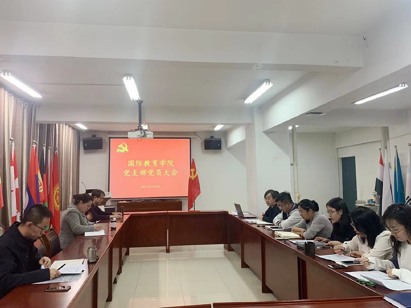 3月26日,国际教育学院党支部召开全体党员大会,正式启动支部党史学习教育活动。会上,支部书记李欣以《品金句 学党史》为题带领全体党员以支部党课的形式开展党史学习,学习习近平总书记2月20日在党史学习教育动员大会上的讲话,品味研读讲话金句内涵和要求,领悟思想,践行学习实践。同时,以党的历次全国代表大会为主线,深刻回顾了党从一大到十九大的奋斗路,引领全体党员在学习党史中总结经验、传承经验、发扬经验。