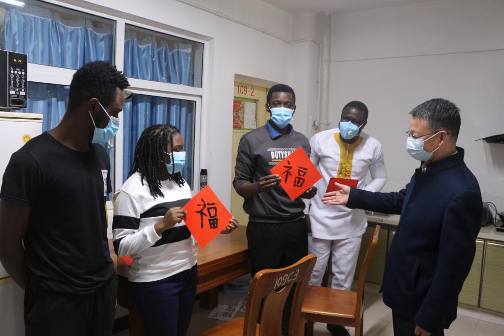 2月4日,农历腊月二十三,中国小年之际,副校长陈兴冲代表学校前往留学生宿舍,看望慰问寒假期间留校的留学生,为学生们带去了对联、福字等新春礼物,送上了包含温暖的祝福。国际教育学院在兰老师参加了慰问活动。