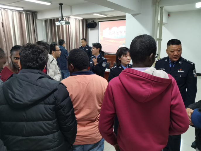 在讲座中,蔡利成警官用流利的中英双语向留学生宣讲了《中华人民共和国出境入境管理法》,专业细致地讲解了出入境、居留许可等与留学生学习生活息息相关的法律法规;着重强调了遵守法纪法规、校纪校规,禁止非法就业等方面的事项,以及违反相关条例应承担的法律责任,结合“三非”案件,以案说法警示教育我校来华留学生;同时,还结合生动真实的案例就留学生在华学习有关人身、财产安全的注意事项作了说明,给同学们提供了建议;最后就同学们关心的护照、签证等涉法问题,民警一一耐心作了解答,留学生们均表示受益匪浅。