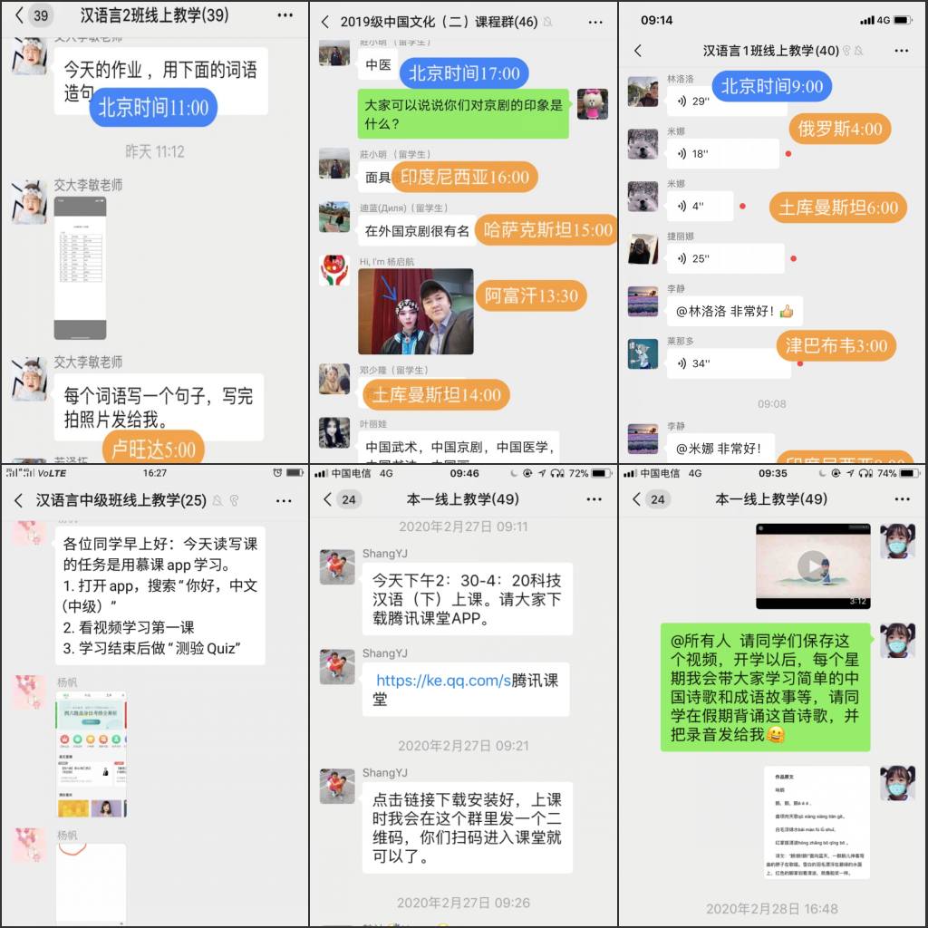 来华留学生居住在世界各地,各个国家地区的网络情况不同,时区不同,为开展在线教学带来诸多挑战。学院全面摸排学生所在地网络运行情况、可否安装教学软件、可否接收微信与QQ信息、时区与时差等情况的基础上,对于每门课的教学内容、教学重点、线上教学方式等问题展开研讨,并细化教学方案。教师根据课程特点,利用向全球开放的各级各类在线课程平台和优质在线课程资源,精心准备教学内容,通过QQ群、微信群等方式开展线上授课、线上学习、辅导答疑等在线教学活动,全力保障疫情防控期间的教学进度和教学质量。