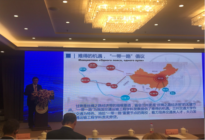 在17日下午的论坛环节,李引珍校长作了题为《黄河之滨的教育明珠,中国铁路工程师的摇篮》的主题报告。他从服务国家“一带一路”建设,推进中国高铁“走出去”战略角度出发,回顾我校与俄罗斯交通类高校合作历史,重点介绍了我校国际人才培养及国际交流合作成果。他希望以此论坛为契机,依托轨道交通优势特色学科,创新合作模式,进一步深化中俄交通类高校合作机制,打造国际品牌合作项目,全面提升我校国际化办学水平,使兰州交通大学成为西北地区行业特色鲜明、服务地方能力突出的高水平教学研究型大学。