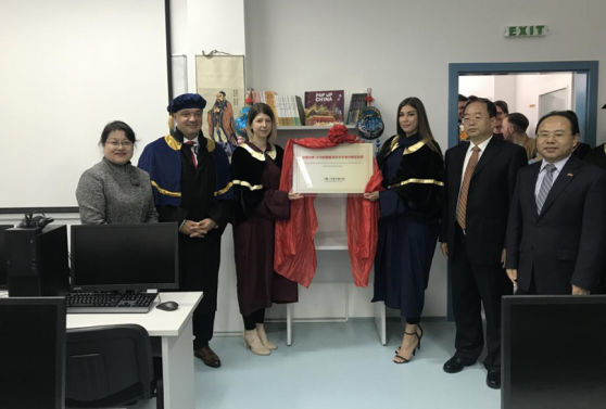 北马其顿当地时间10月10日下午,由中国科技部立项支持,我校国际教育学院张国锦院长主持建设的中国甘肃—北马其顿科技文化交流中心实验室,在北马其顿奥赫里德市举行揭牌仪式,并投入运行。