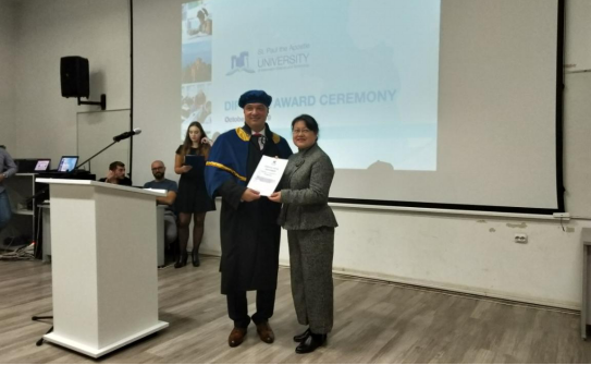 在此次揭牌仪式上,玛瑞纳校长代表学校向张国锦院长授予了“荣誉教授”的称号,感谢她作为北马其顿科技文化交流中心项目负责人对学校一直以来的支持,帮助学校在办学能力、国际化水平等多方面大幅度提升。