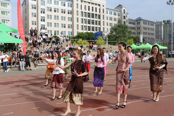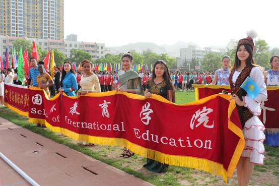 开幕式上来自美国、俄罗斯、乌克兰、土库曼斯坦、老挝、卢旺达、尼日利亚等38个国家的国际学生身着本国传统服饰,手持本国国旗,迈着矫健的步伐,合着音乐翩翩起舞,充分展示了国际学生良好的精神风貌和我校国际教育工作成果。