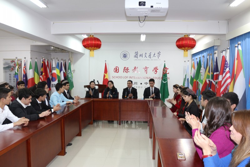 尚赫先生表示,兰州交通大学学风严谨,专业设置契合土库曼斯坦发展需求,深受土库曼斯坦学生青睐,在校学生数量达50余名。值此中国农历新年节日期间,专程来兰看望土库曼斯坦籍留学生,并代表土库曼斯坦驻华使馆恭祝我校师生新春快乐,感谢兰州交通大学在促进土中交流方面所做的贡献,希望在新的一年里,兰州交通大学能继续促进两国教育人文交流。尚赫先生同时勉励我校土库曼斯坦籍留学生努力学习,遵守中国法律,向中国人民展示土库曼斯坦人民的风采,争做土中两国友好的推动者。
