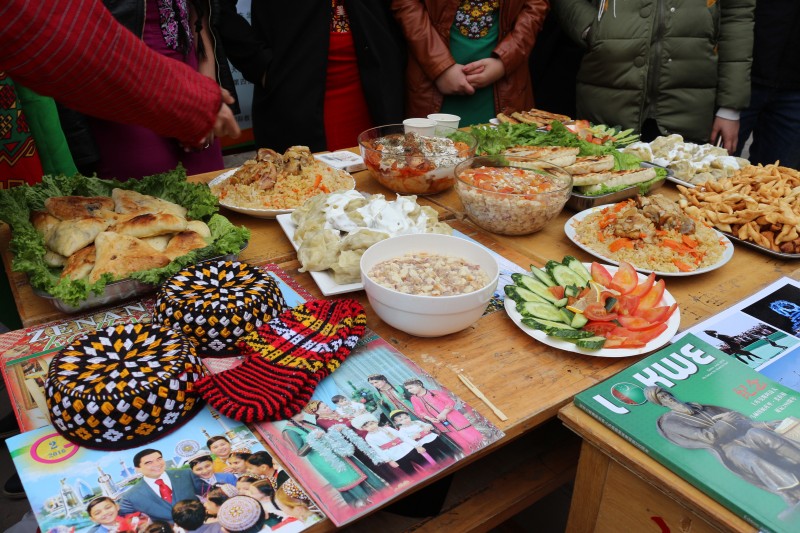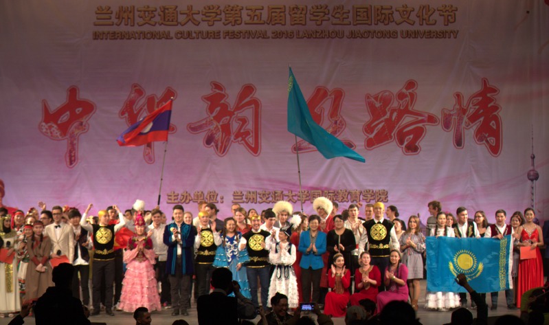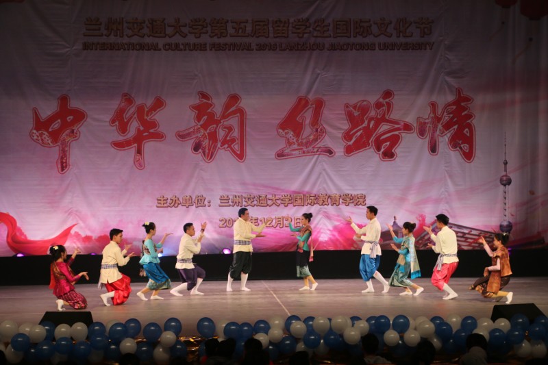 兰州交通大学第五届留学生国际文化节以“中华韵丝路情”为主题,分为各国饮食文化展和文艺演出两部分。在饮食文化展台上,来自38个国家的250余名留学生精心制作了本国特色美食,准备了极具民族特色的文化艺术品、图片、服饰和国情介绍。观众穿行于按照“一带一路”沿线国排列的各国展台之中,品尝各国美食,领略各国文化,体会不同风情,增进中外交流。
