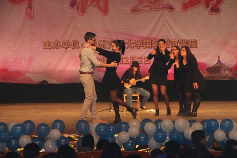 国际文化节的重头戏——文艺演出于12月2日晚在兰州交通大学大礼堂精彩呈现。外形威武、动作刚劲、神态多变的中国传统舞狮表演拉开整场演出的序幕,中外39个国家的服装礼仪展示为观众呈现了韵动世界风,充满非洲风情的舞蹈《Ghana Cultural Performance》,激情奔放的乌克兰舞蹈《NEBO》,以及来自越南、韩国、蒙古、老挝、哈萨克斯坦、吉尔吉斯斯坦等国留学生表演的精彩节目将演出推向一个又一个高潮。伴随吉他弹唱《TRY》的优雅曲风,四位美丽的美国姑娘为观众展现了她们的自然自信之美,意大利和法国留学生表演的手语展示《Italian Hand Gesture Show》敲开了人与人之间的另一扇心门,美国、也门等国留学生自编自演的小品《外国人在中国》以第一视角演绎外国人融入中国、中外交融的有趣故事,深入刻画了中国蓬勃发展给世界各国带来的新机遇。西班牙、阿尔及利亚等国同学的乐队、街舞表演更是将全场观众的热情推向了极致。此次,主办方兰州交通大学国际教育学院特意开通了文艺演出视频直播,让无法现场观看的观众也能尽享乐趣,场内场外同欢愉。