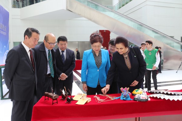 揭牌仪式后,与会领导和嘉宾参观了中国——土库曼斯坦文化展。