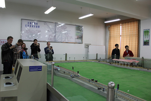 随后代表团分别参观了我校丝绸之路染撷博物馆、光电技术与智能控制重点实验室、运输学院信息与控制实验中心。代表团成员对染撷技艺表现了浓厚的兴趣,并积极提问、参与讨论。我校光电技术与智能控制重点实验室、运输学院信息与控制实验中心给来访学生留下了深刻印象。参观过程中,实验室老师与学生代表亲切交谈,就铁路车站智能化与信号控制方面做了详细深刻的介绍。