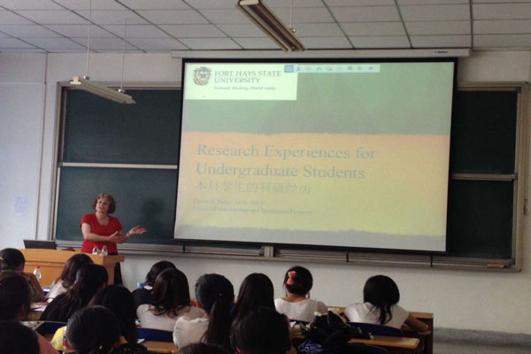 讲座通过生动的教学案例和学生访谈,详细介绍了美国福特海斯州立大学在课内外展开的丰富多彩的科研活动。