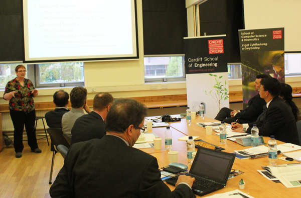 在卡迪夫大学,陈兴冲副校长一行受到该校副校长Karen M Holford教授的热情接待,陈兴冲副校长向Karen M Holford教授等介绍了兰州交通大学的历史发展、专业设置、科研水平、师资力量等情况,希望能与卡迪夫大学建立良好的合作关系,相互促进,共同发展,进一步增强和深化国际交流与合作。陈兴冲副校长一行分别与卡迪夫大学工程学院、计算机信息科学学院、以及英文传播与哲学学院进行了交流,并就我校与该校相关学院在硕士生联合培养、教师培训和互访、科研合作、文化交流等方面开展长期合作达成一致意见。双方计划从今年开始实施硕士生联合培养计划,卡迪夫大学也表示将免费接收我校教学科研人员赴该校访学。