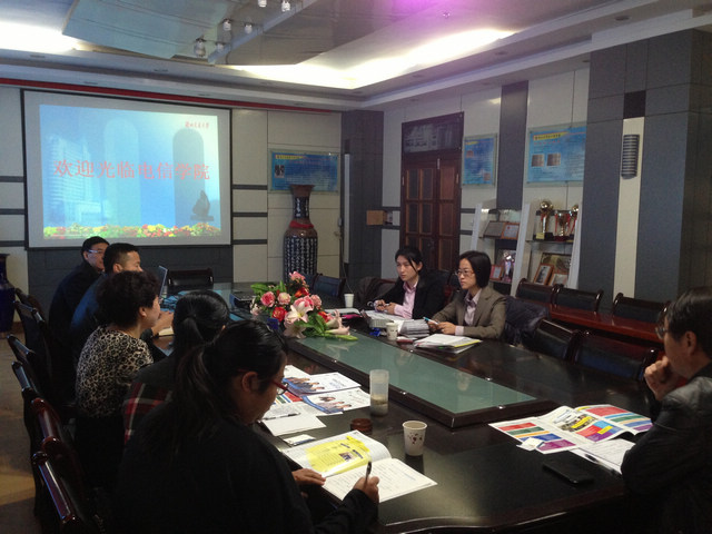 国际交流处负责人先就我校国际合作与交流基本情况进行了简单介绍。随后,康东雯女士介绍了沃特福德理工学院的基本情况。电信学院与经管学院相关负责人也就其学院基本情况分别进行了简单介绍。双方随后就合作领域、合作模式、联合培养具体细节等事宜进行了讨论。并表示会共同努力,尽快推进双方在联合培养、教师互访、科研合作、和文化交流方面的实质性合作。