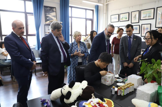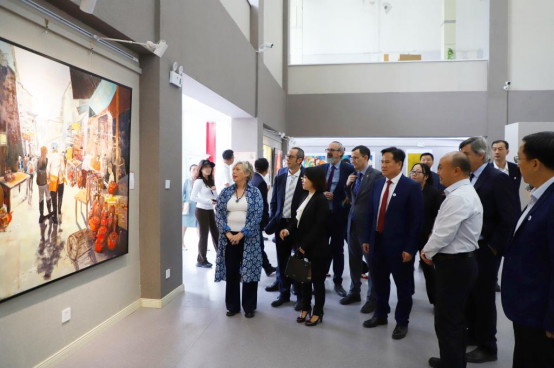 座谈交流结束后,狄生奎、陈光武陪同卡门一行参观了学校天佑园、天佑美术馆、校史馆和创新创业基地,使来宾在行走间领略美丽的交大校园,在观看学生作品展、创新创业项目中感受我校重视实践和创新的学生培养理念,在参观校史馆的过程中了解我校的历史沿革和发展历程、体会我校深厚的铁路文化积淀和对外开放办学的理念。