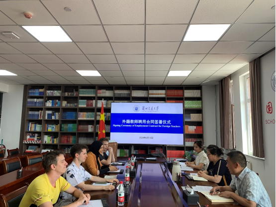 6月12日至14日,国际交流中心在笃行楼1120会议室召开外籍教师聘用合同签署仪式。张国锦主任出席会议,与5名续聘外籍教师签署了聘用合同,并就聘期内工作开展情况进行了交流。