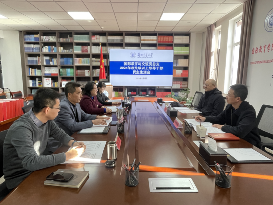 1月2日下午,国际教育学院、国际交流中心(港澳台事务办公室)召开了2024年度处级领导干部民主生活会,学校第九督导组组长、党委常委、副校长闫浩文,督导组成员蔺鹏臻到会监督指导,国际教育学院、国际交流中心(港澳台事务办公室)全体处级干部参加会议。会议由国际教育学院院长、国际交流中心(港澳台事务办公室)主任张国锦主持。