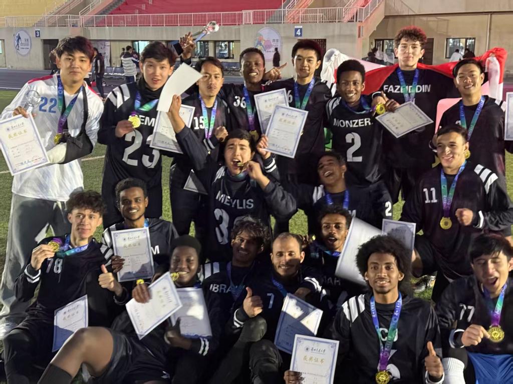 11月11日,兰州交通大学第 57 届运动会大学生足球比赛圆满落幕,国际教育学院来华留学生足球队凭借默契配合与顽强拼搏,一路过关斩将、力克强敌,最终摘得赛事桂冠,用汗水与实力在绿茵场上书写了属于留学生的荣耀篇章。