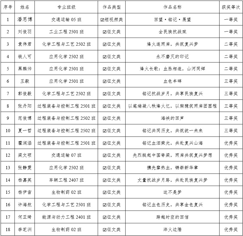 本次“铭记抗战岁 共享民族复兴”主题作品征集与遴选活动的成功举办,不仅为我校学生提供了一个抒发爱国情感、展现创作才能的平台,更是一堂生动而深刻的爱国主义教育和国情教育课。它有效引导广大青年学生铭记历史,珍视和平,深刻理解国家统一与民族复兴的内在联系,进一步铸牢中华民族共同体意识,激励师生为推进祖国和平统一进程、实现中华民族伟大复兴的中国梦贡献智慧和力量。