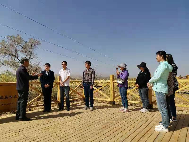 在“习近平总书记压沙点”现场,现任八步沙林场场长、第二代治沙人郭万刚详细介绍了八步沙林场三代治沙人战风沙、斗干旱,一步步、一株株将43万余亩沙漠变为绿洲的治沙历程,宣讲了2019年习近平总书记视察林场期间的指示精神。通过实地的参观学习,党员们深深地被八步沙“六老汉”三代人甘守大漠深处谱写当代愚公新篇章的精神所震撼。