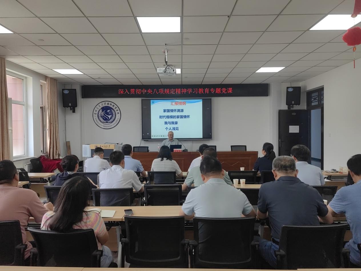 6月26日,校党委常委、副校长闫浩文为国际教育与交流党总支、机电工程学院党委理论学习中心组成员讲授了一堂主题鲜明、内涵丰富的专题党课,党课围绕深入贯彻中央八项规定精神学习教育内容及中国人的家国情怀展开。
