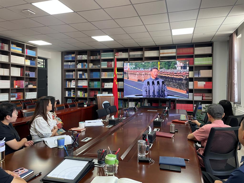 9月3日,纪念中国人民抗日战争暨世界反法西斯战争胜利80周年阅兵式隆重举行,国际教育与交流党总支组织全体党员共同收看了这一盛大阅兵式,共同回顾历史、缅怀先烈、展望未来。