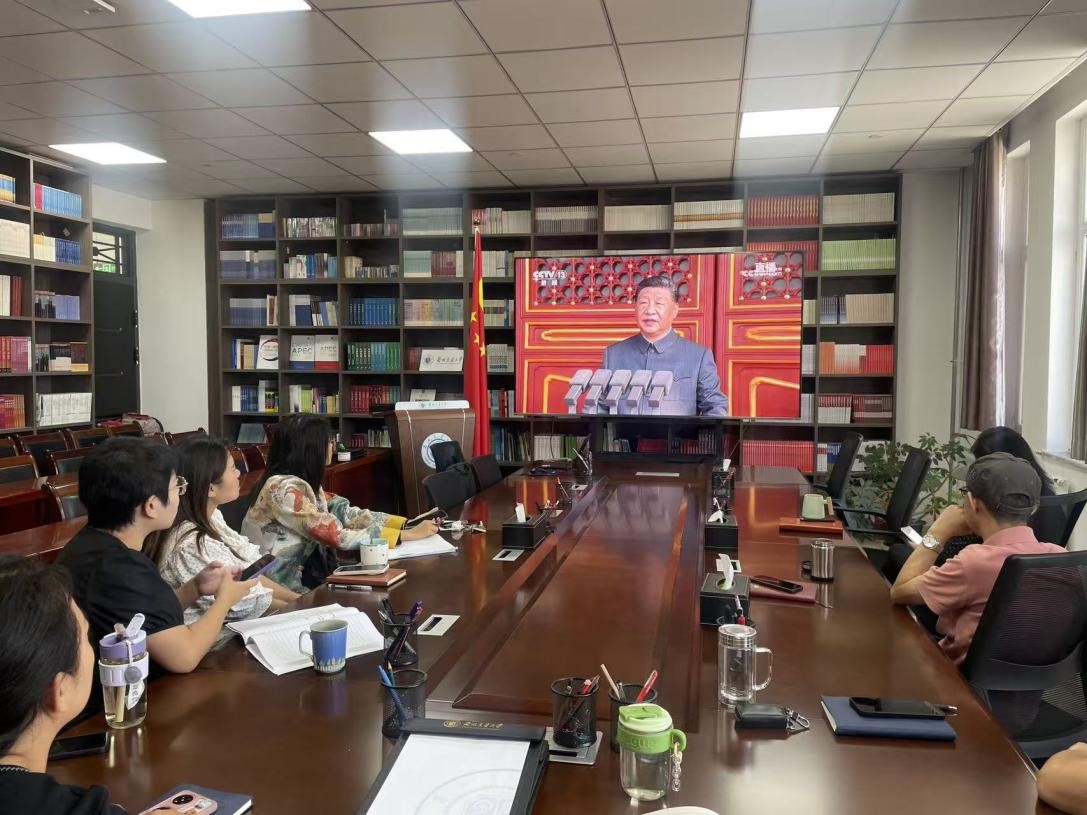 9 月 3 日上午,纪念中国人民抗日战争暨世界反法西斯战争胜利 80 周年大会在北京天安门广场隆重举行。国际教育与交流党总支组织全体党员共同收看了这一盛大阅兵式,共同回顾历史、缅怀先烈、展望未来。